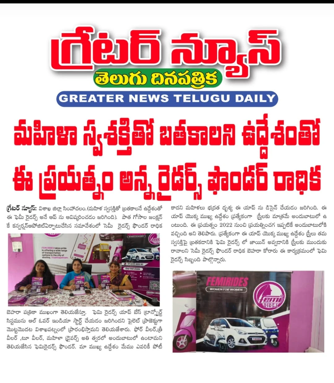 The media has applauded FEMI RIDES for not only providing transportation solutions but also for contributing to a larger movement that challenges gender bias and paves the way for women to excel in traditionally male-dominated fields. We are proud to have earned these accolades, as they reflect the positive impact we are making in the lives of women and the community at large.